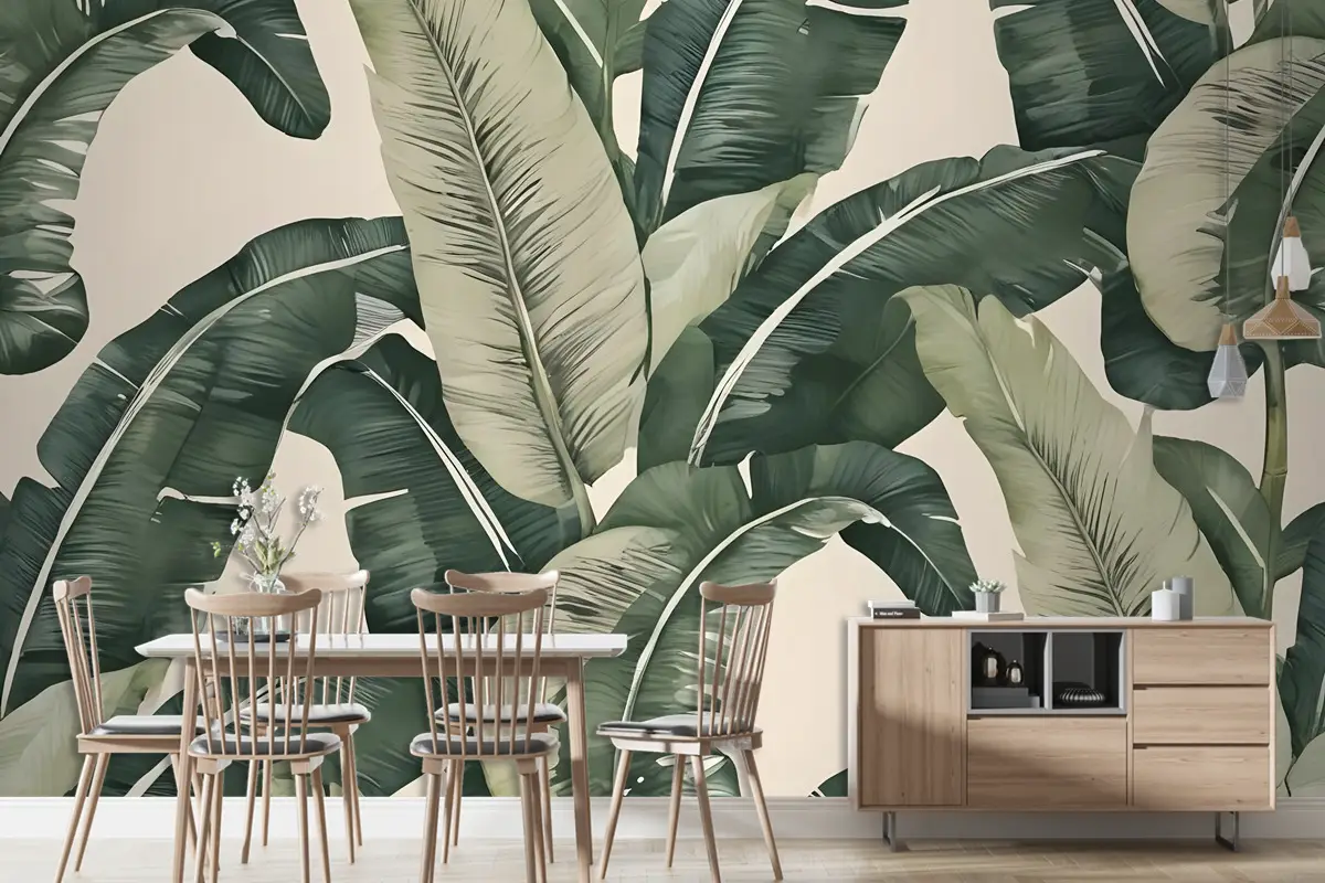Retro Muz Yaprakları Desen Duvar Kağıdı