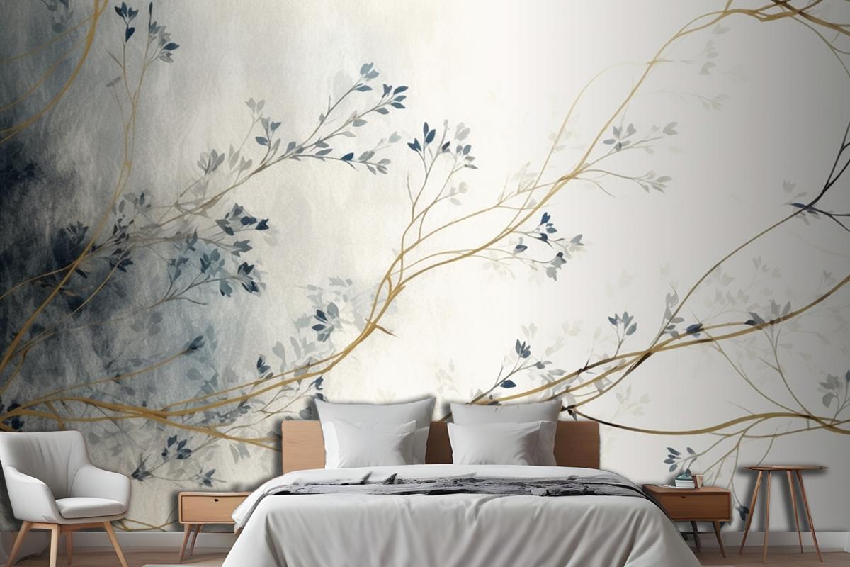Retro Nostaljik Altın Fırça Darbeleri Yatak Odası Duvar Kağıdı