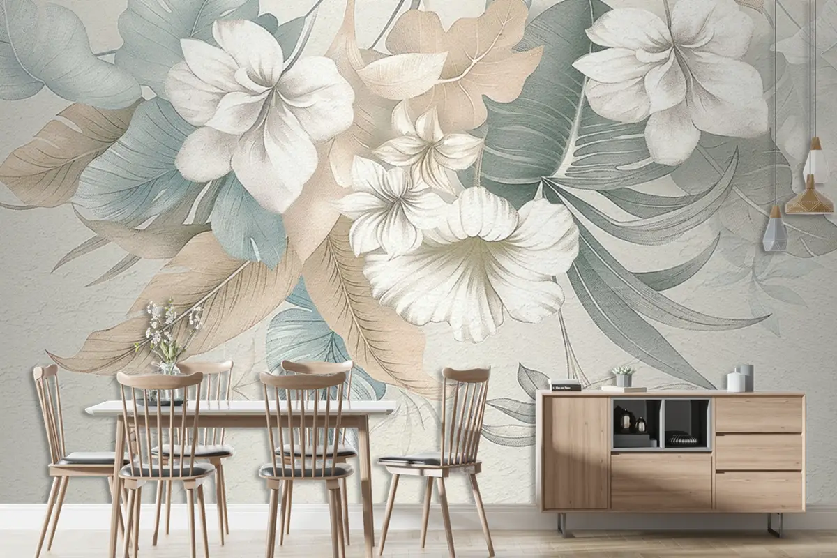Romantik Tropikal Bitki Desenleri Vintage Duvar Kağıdı
