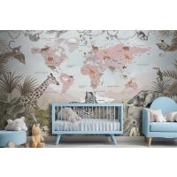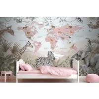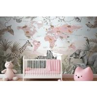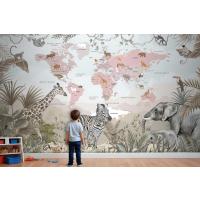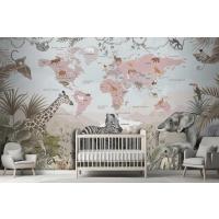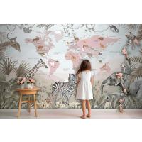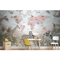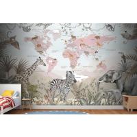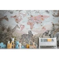 Safari Hayvanları Ve Çocuk Dünya Haritası Duvar Kağıdı