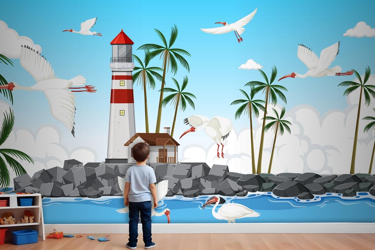 Sahilde Amerikan Beyaz Aynak Grubu Çocuk Odası Duvar Kağıdı