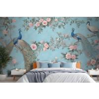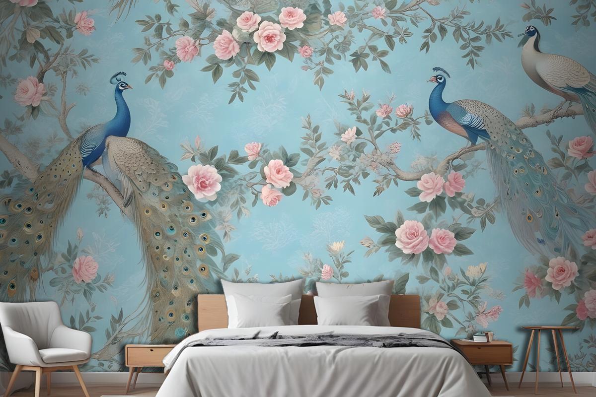 Şakayık Çiçeği Ile Tavus Kuşu Yatak Odası Duvar Kağıdı