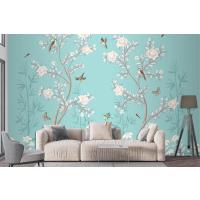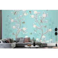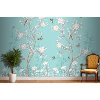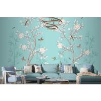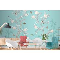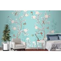 Şakayık Ve Kuşlarla Chinoiserie Turkuaz Duvar Kağıdı