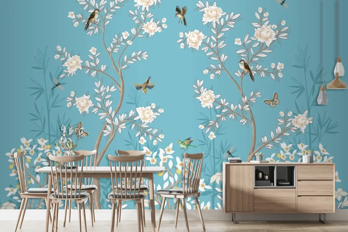 Şakayık Ve Kuşlarla Çin Duvar Kağıdı Duvar Kağıdı