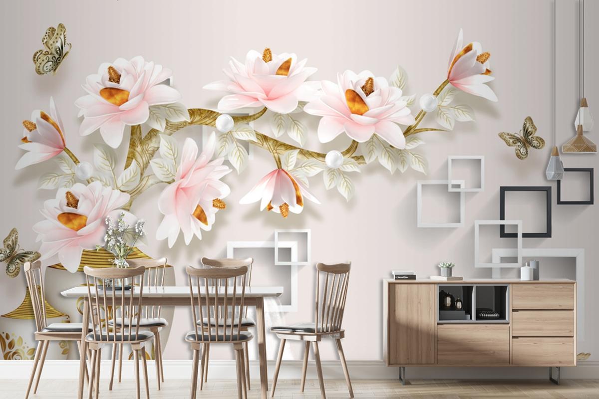 Saksıda Çiçek Ve Kare Aksesuarlar 3D Duvar Kağıdı