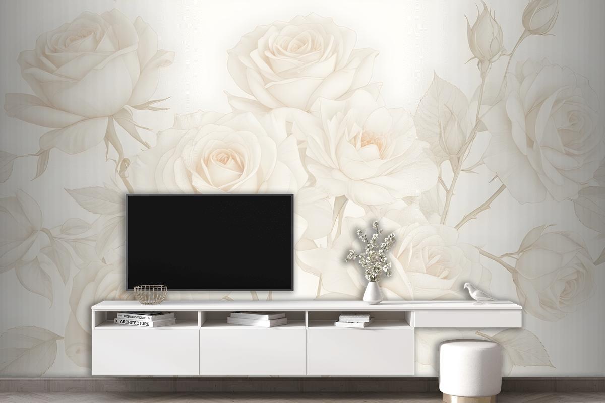 Sarı Büyük Resimli Güller Oturma Odası Salon Duvar Kağıdı