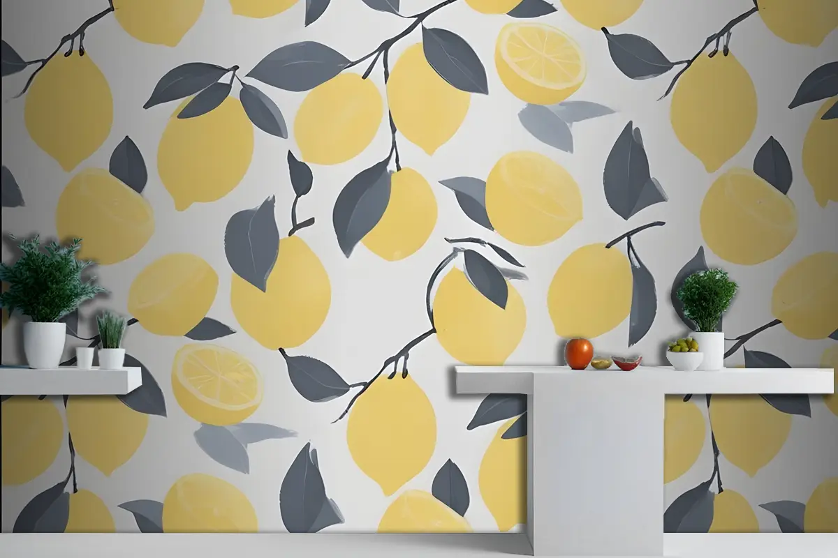 Sarı Limon Modern Tekrar Desenli Mutfak Duvar Kağıdı