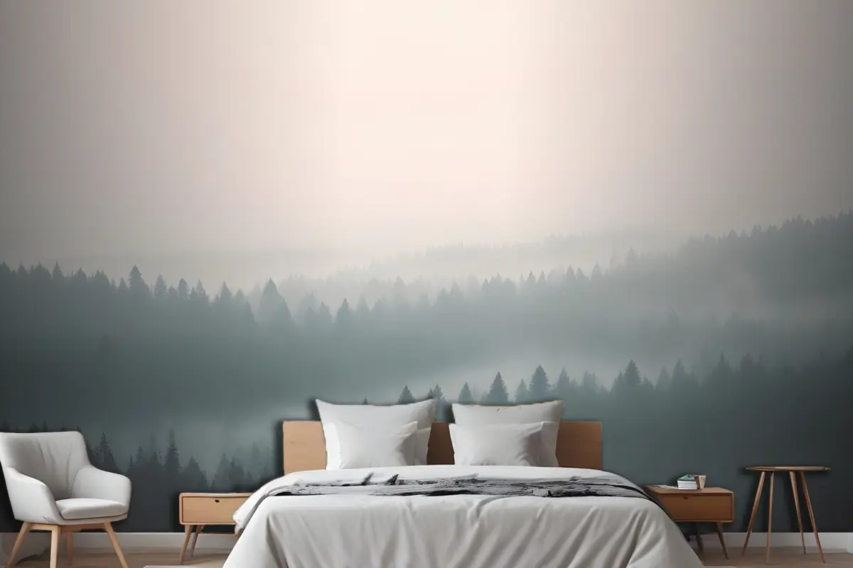 Şeftali Ve Yeşil Pastel Ombre Orman Yatak Odası Duvar Kağıdı