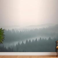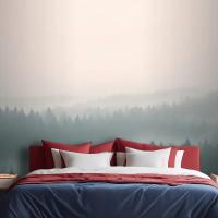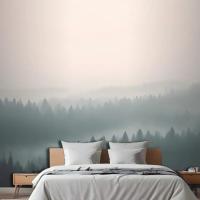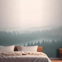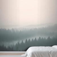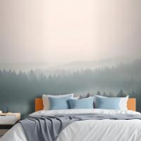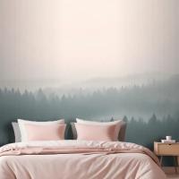 Şeftali Ve Yeşil Pastel Ombre Orman Yatak Odası Duvar Kağıdı