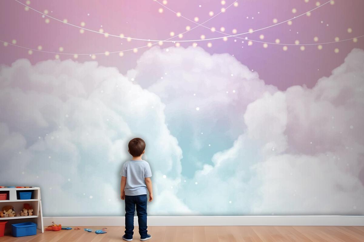 Şeker Pamuk Şeker Bulutlar Ve Yıldız Tasarım Çocuk Odası Duvar Kağıdı Ile Gökyüzü Arka Plan