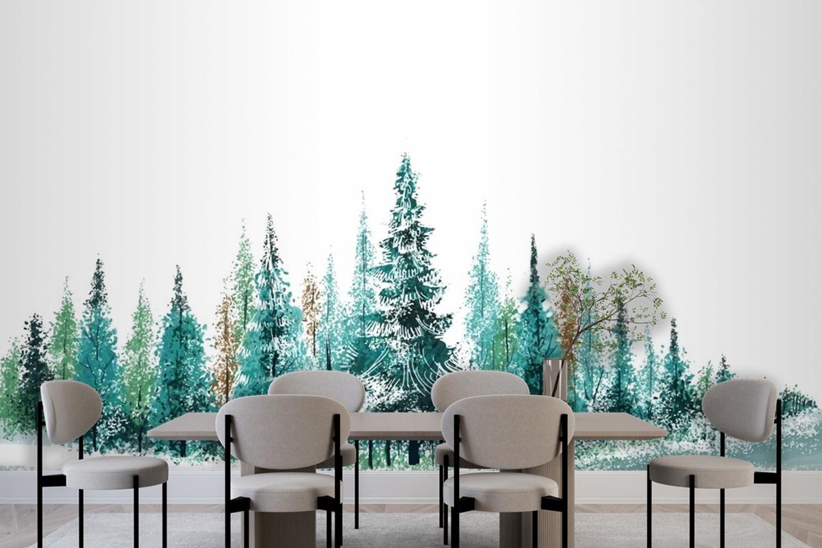 Şenlikli Kış Manzarası Noel Ağaçları Güzel Tatil Kartı Duvar Kağıdı