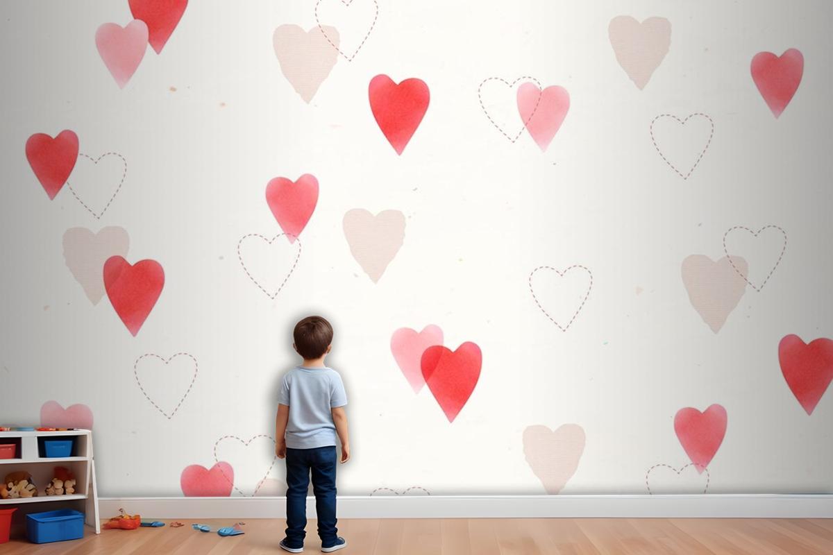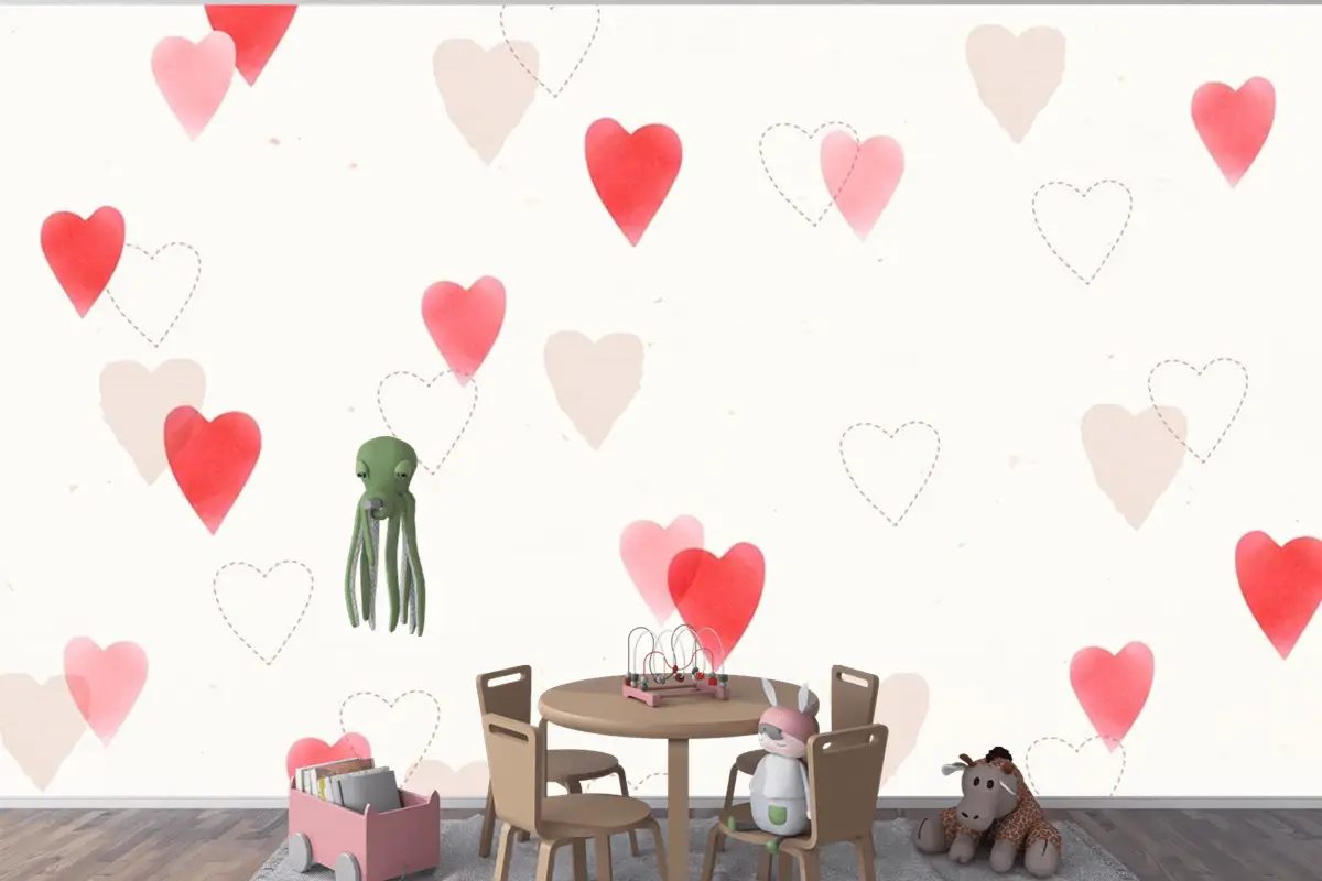 Sevimli Aşk Desen Arka Plan Çocuk Odası Duvar Kağıdı