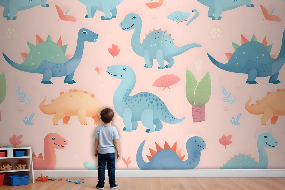 Sevimli Dinozorlar Ile Seamless Modeli Sevimli Dinozorlar Çocuk Odası Duvar Kağıdı