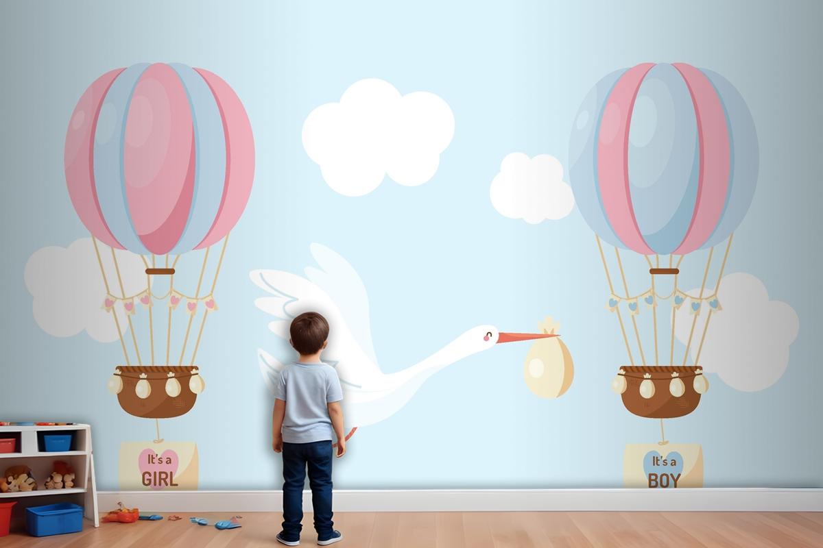 Sevimli Düz Tasarım Cinsiyet Ortaya Çocuk Odası Duvar Kağıdı