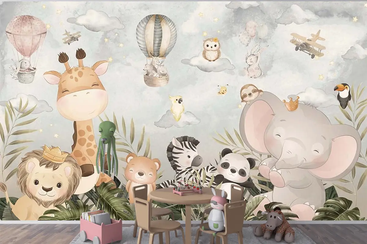 Sevimli Hayvanların Neşeli Dünyası Çocuk Odası Duvar Kağıdı