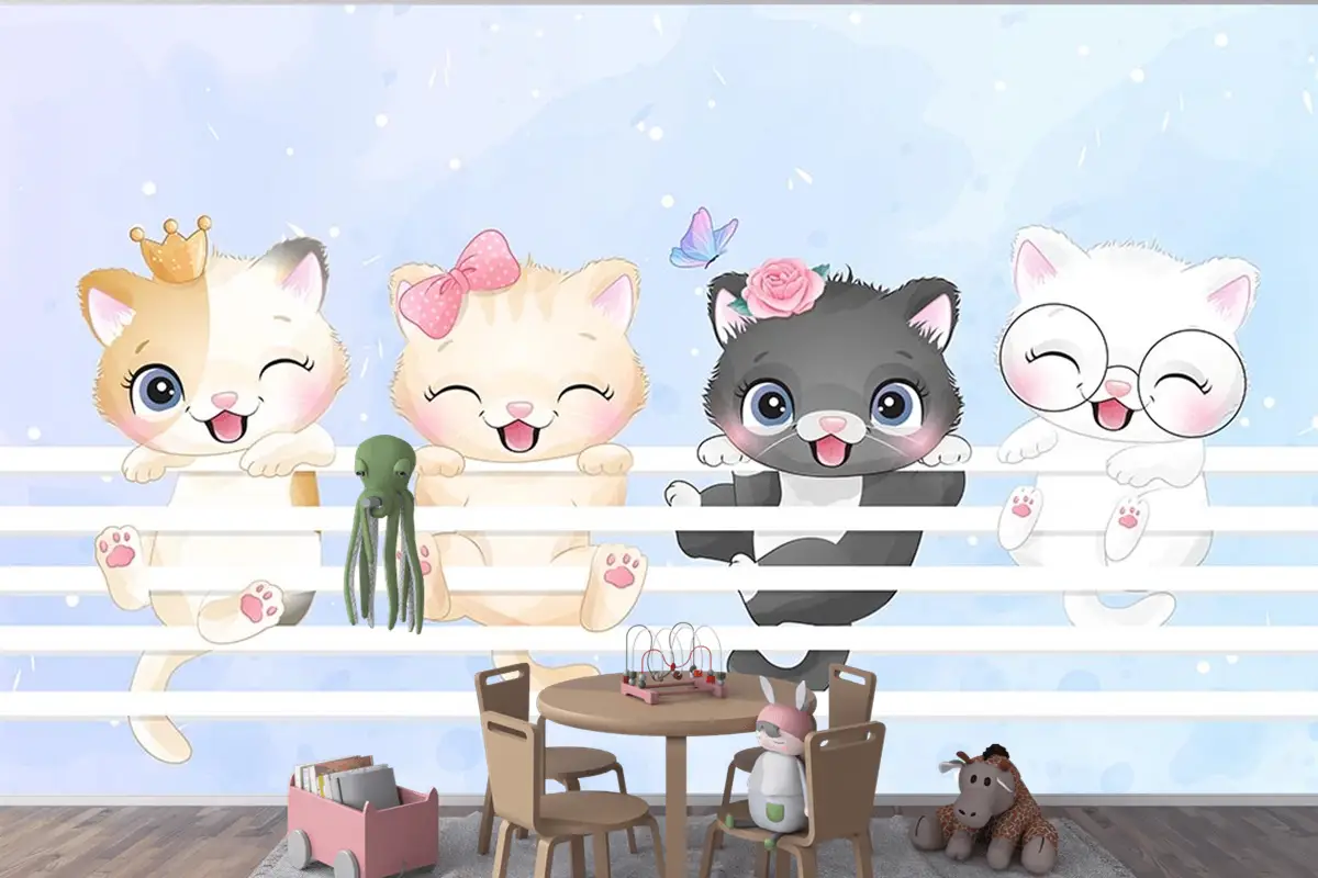 Sevimli Kedicikler Çocuk Odası Duvar Kağıdı