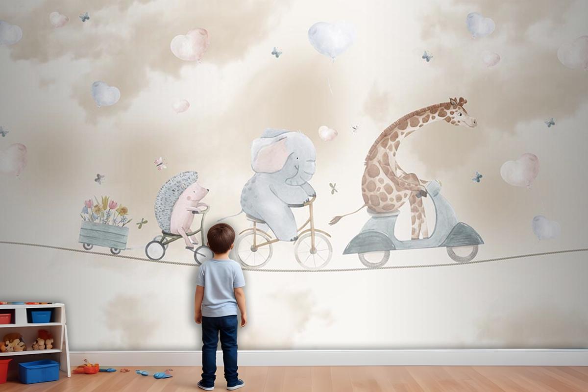 Sevimli Safari Hayvanları Duvar Kağıdı Çocuk Odası Çocuk Odası Duvar Kağıdı