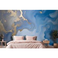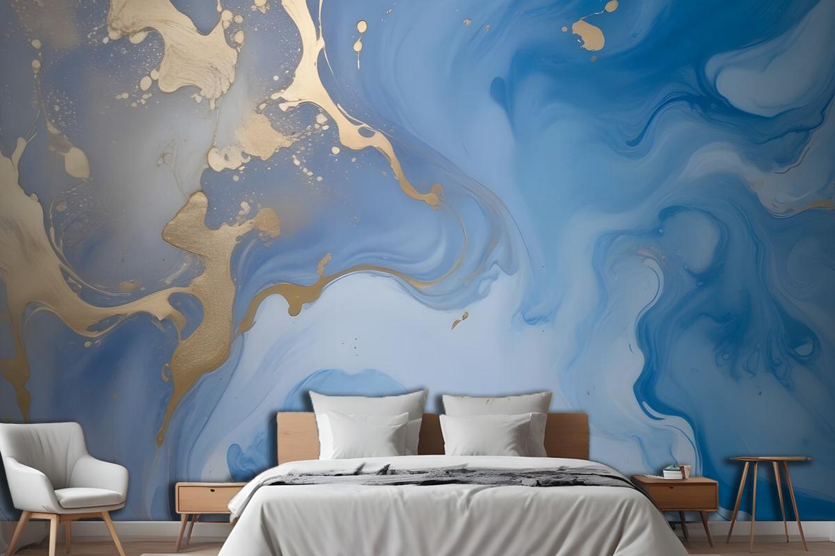 Sıçrama Yatak Odası Duvar Kağıdı Ile Mavi Altın Görünümlü Mermer