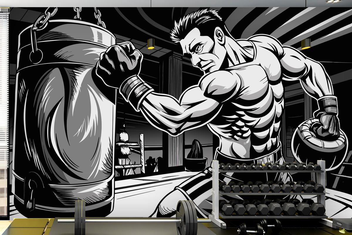 Sırtında Boks Ringi Olan Bir Boksörün Çizimi Duvar Kağıdı