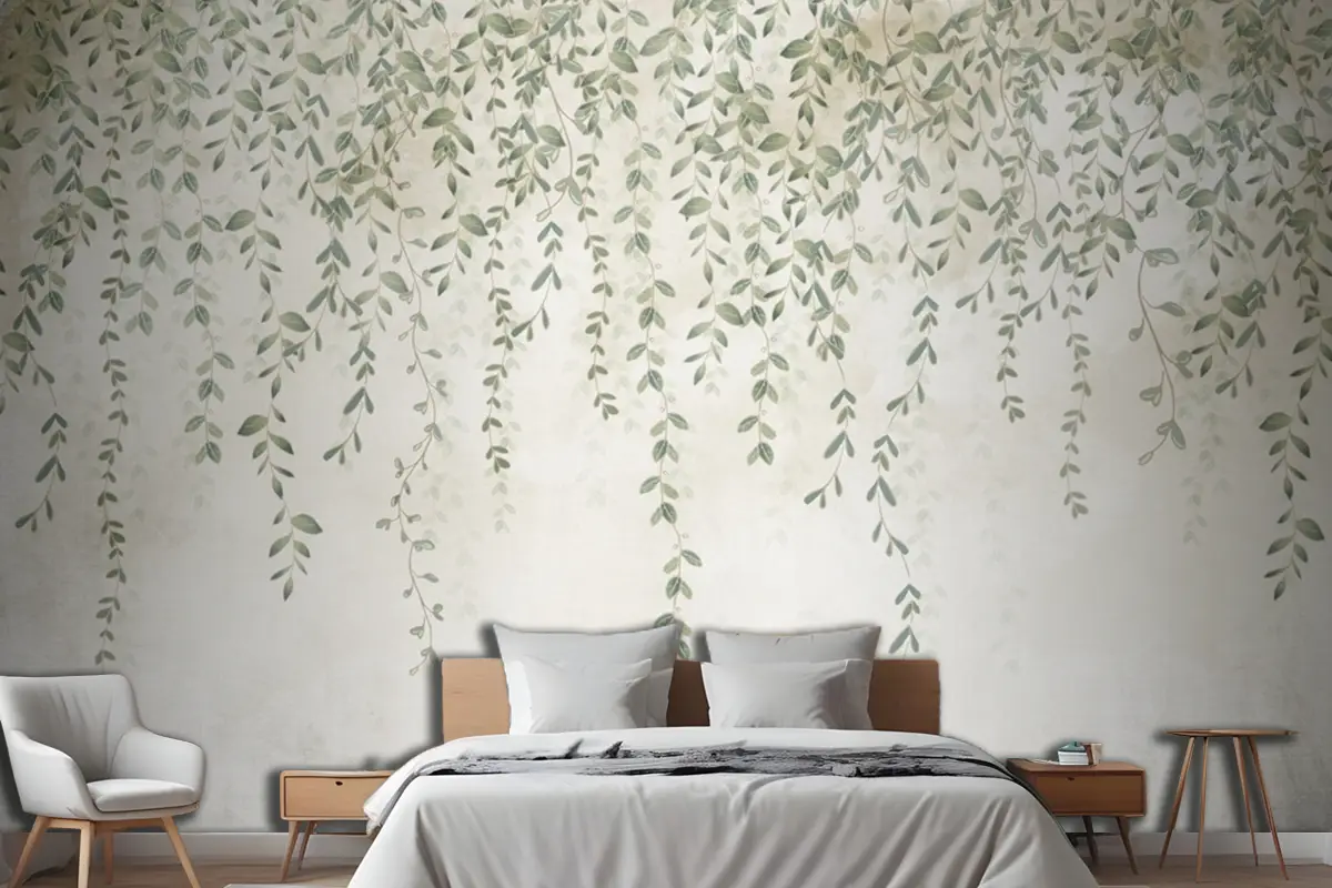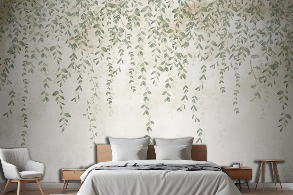 Sisli Ormanda Tropikal Yaprak Tasarımı Yatak Odası Duvar Kağıdı
