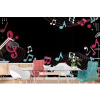 Siyah Arka Plan Mavi Pembe Notalar Müzik Duvar Kağıdı