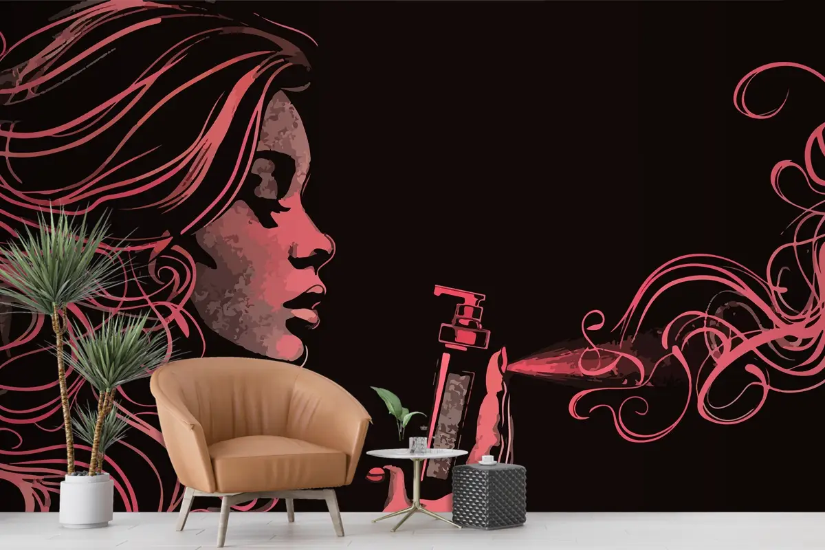 Siyah Arka Planda Saç Spreyi Uygulayan Zarif Kadın Duvar Kağıdı