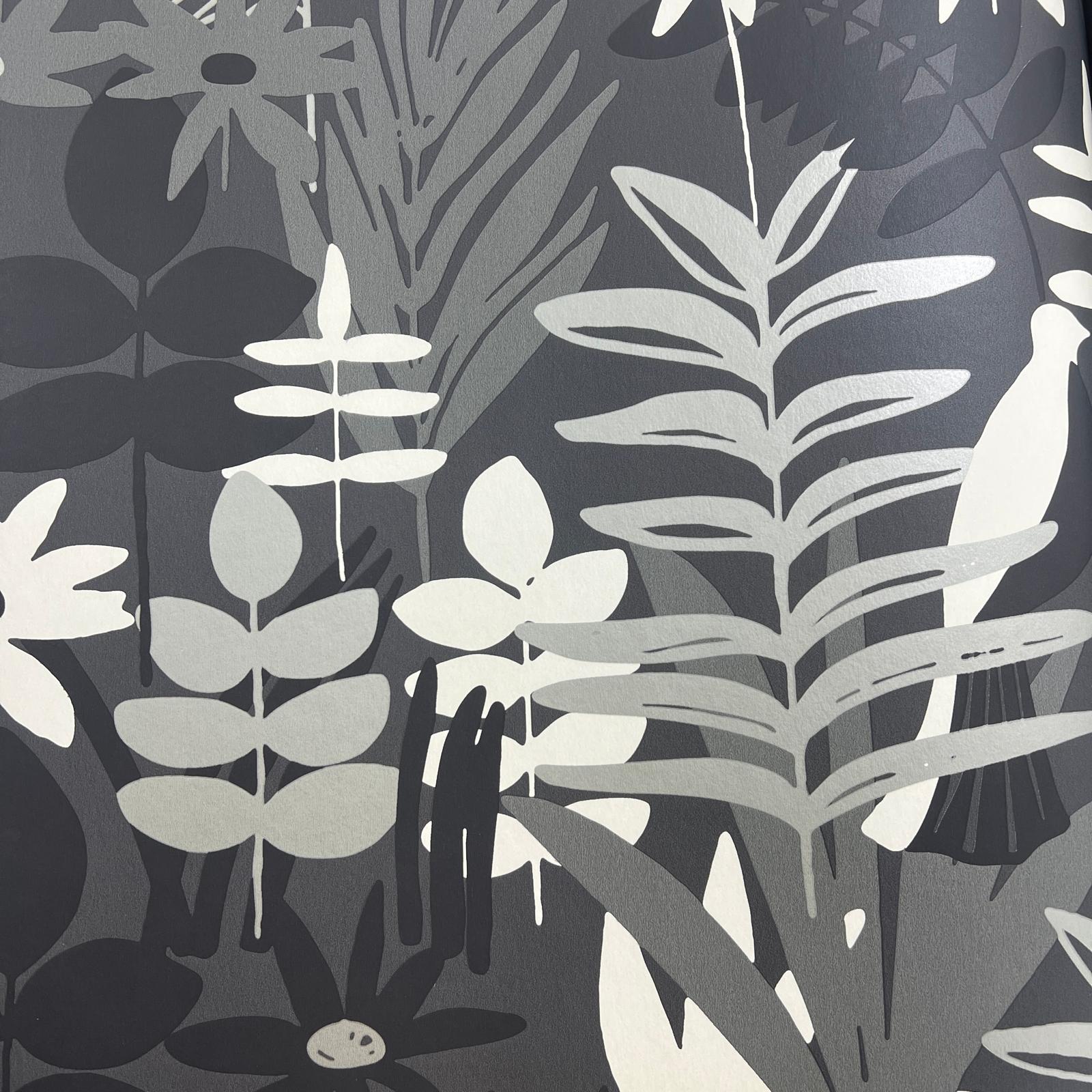 Siyah Bej Krem Çiçek Yaprak Desen Duvar Kağıdı 112031
