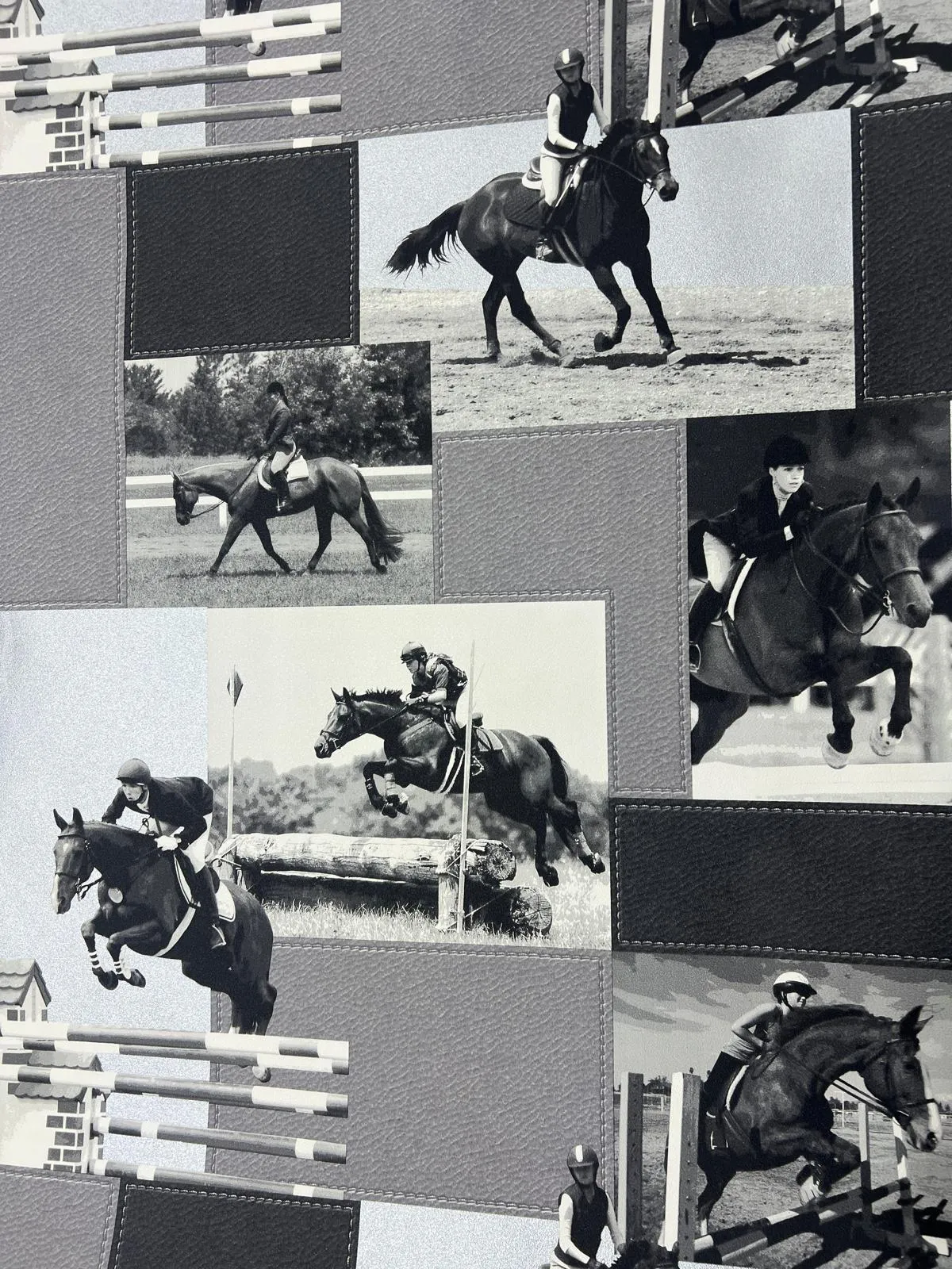 Siyah Beyaz At Binici Desen Duvar Kağıdı