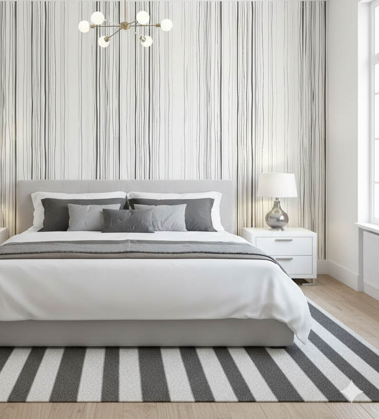 Siyah Beyaz Çizgili Desenli Duvar Kağıdı 3102