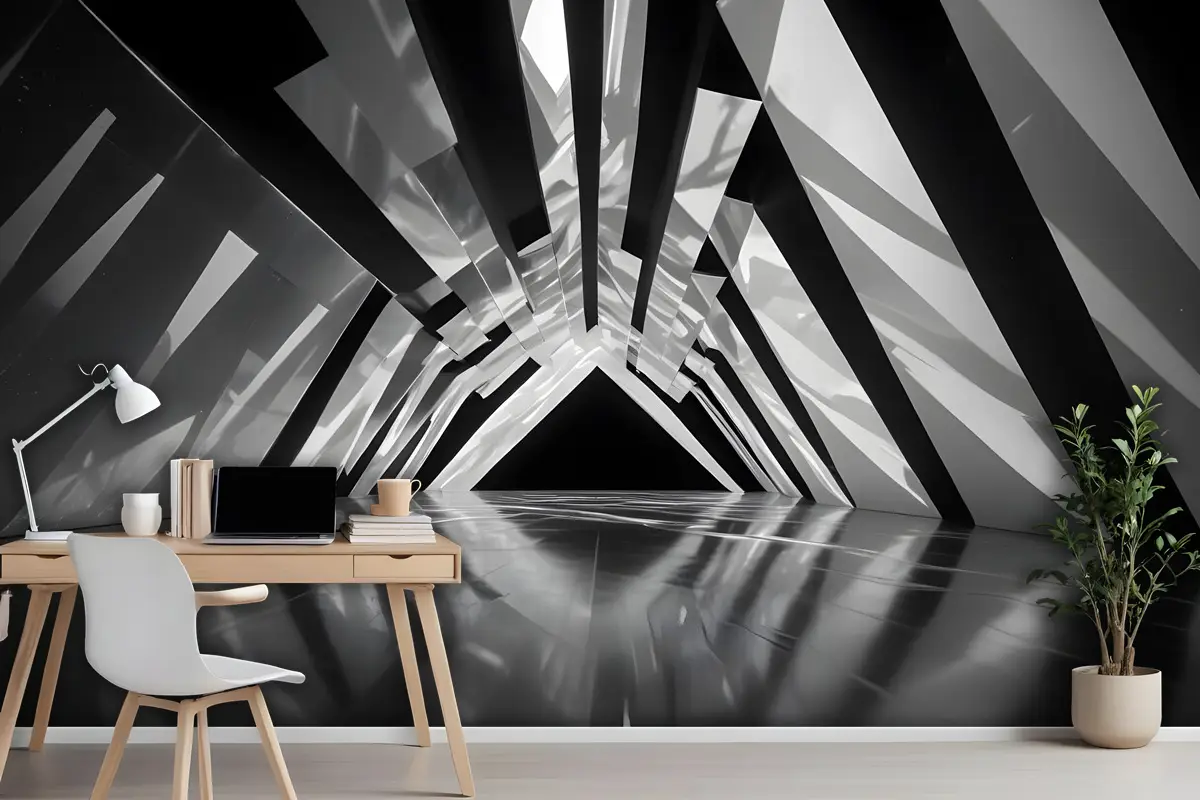 Siyah Beyaz Mimari Yanardöner Stil Duvar Kağıdı