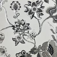 Siyah Beyaz Parlak Çiçek Desenli Duvar Kağıdı 3007