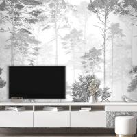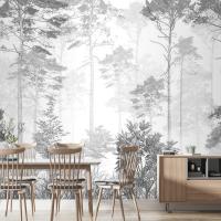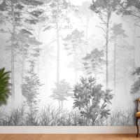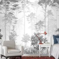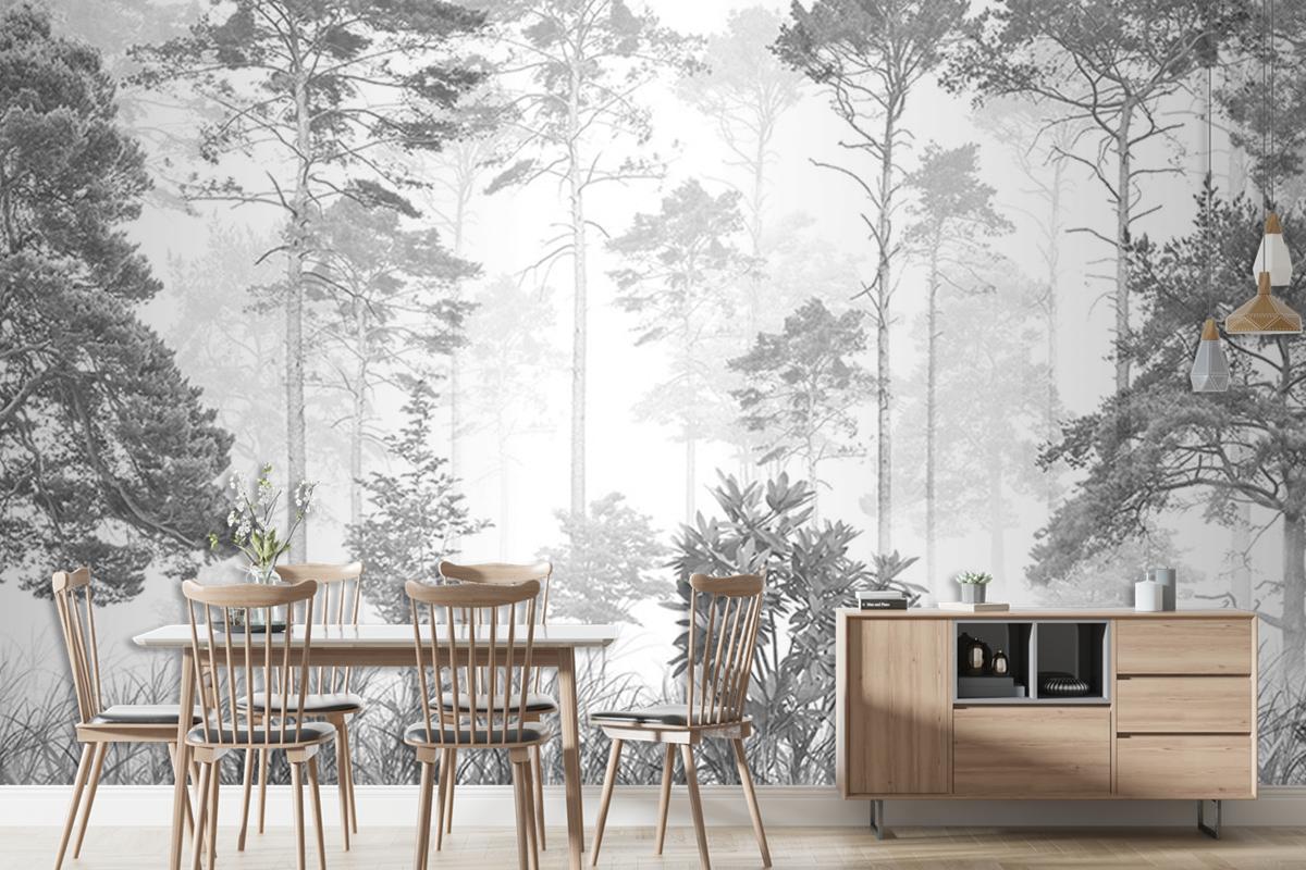 Siyah Beyaz Tropikal Yapraklar Duvar Kağıdı Tasarımı