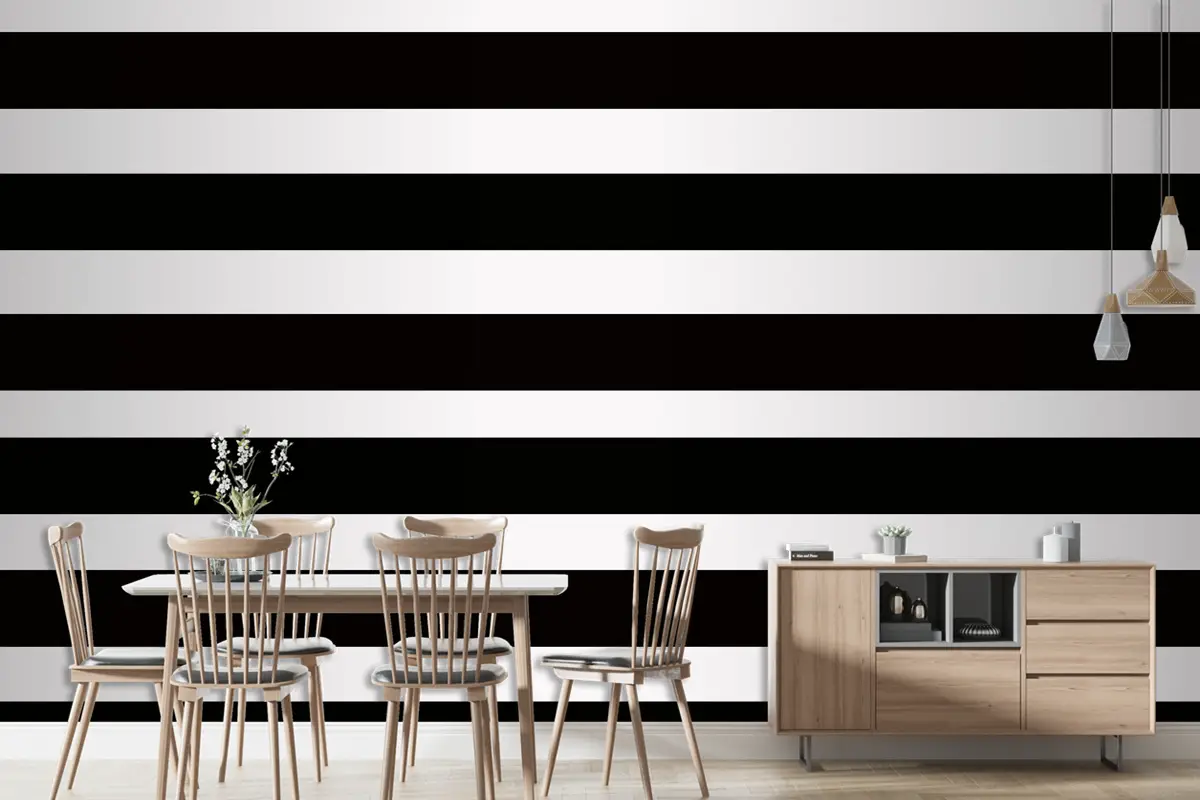 Siyah Beyaz Yatay Çizgili Arka Plan Desen Duvar Kağıdı