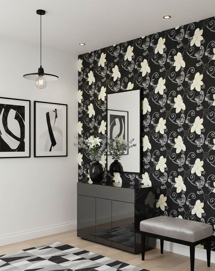 Siyah Çiçek Desen Duvar Kağıdı 126857/B