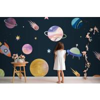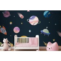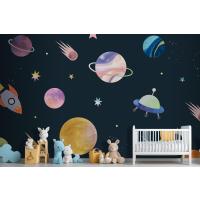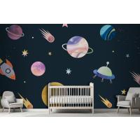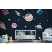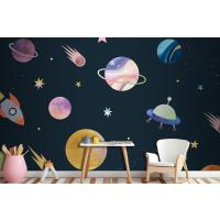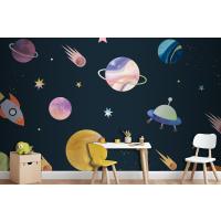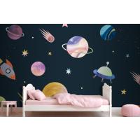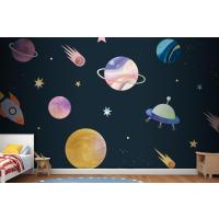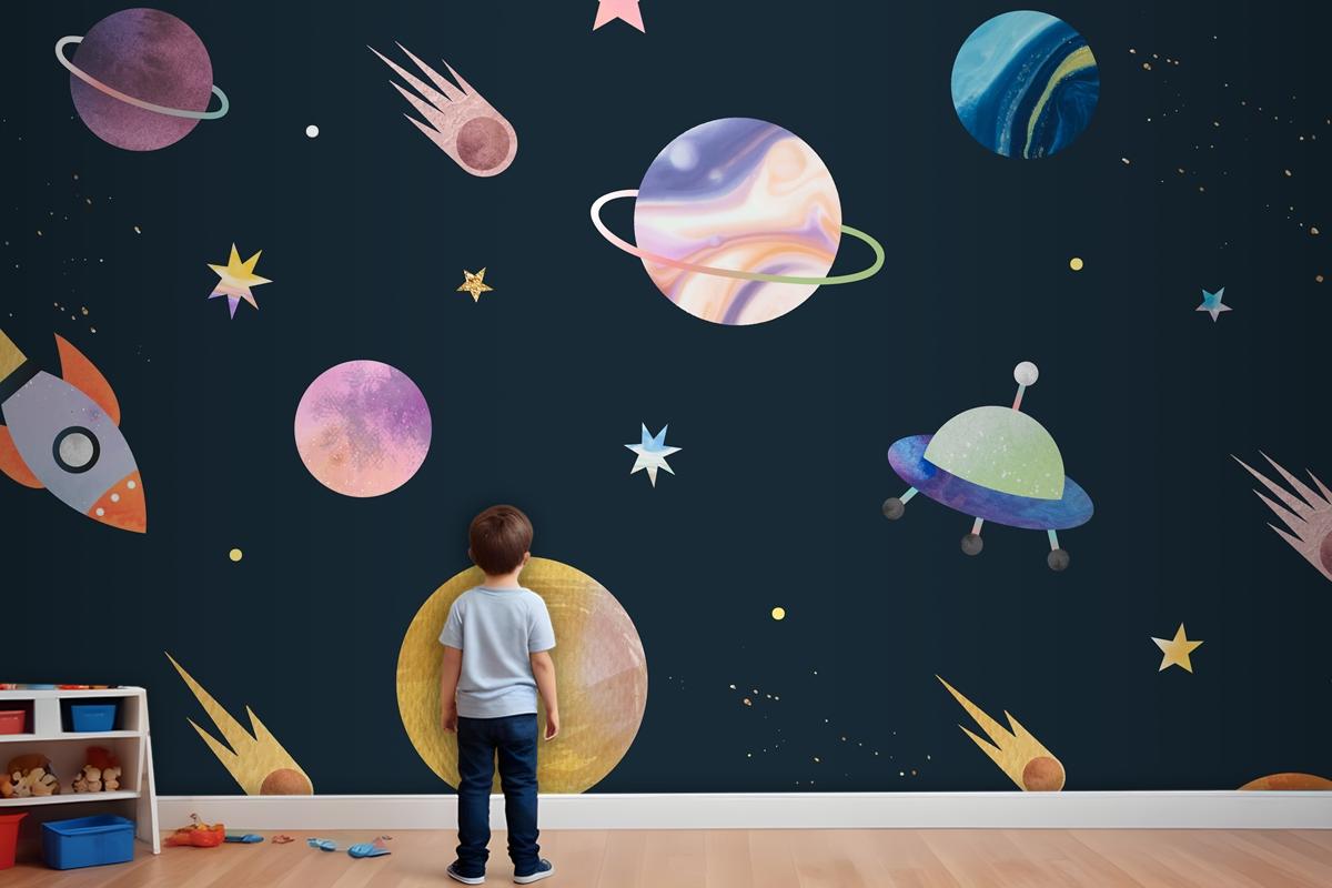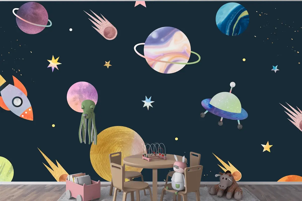 Siyah Çocuk Odası Duvar Kağıdı Duvar Üzerine Renkli Galaksi Suluboya Doodle