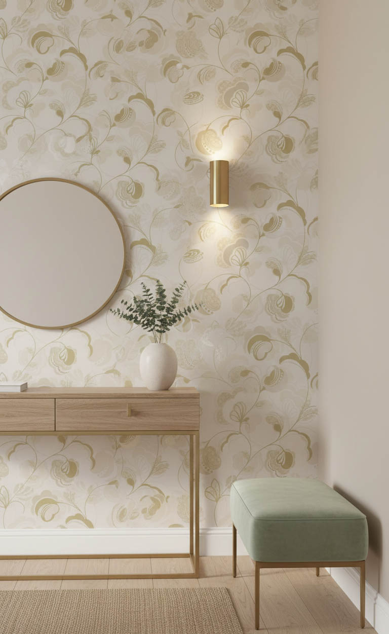 Soft Fıstık Yeşili Çiçek Desen Duvar Kağıdı 111035