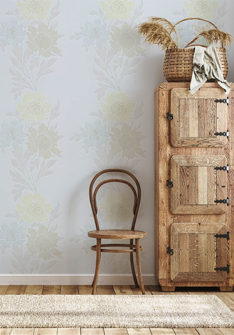 Soft Mavi Arka Plan Renki Çiçekler Ucuz Duvar Kağıdı 771411