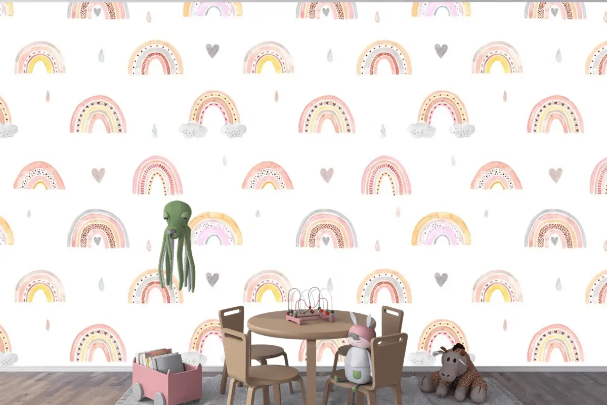 Soft Renk Gökkuşakları Çocuk Odası Duvar Kağıdı