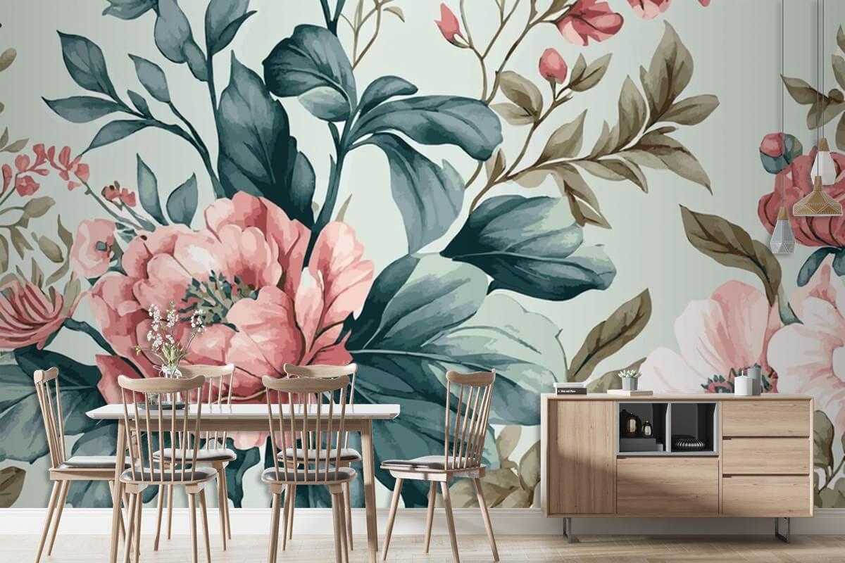 Soyut Çiçek Sanat Şablonu Botanik Suluboya Duvar Kağıdı