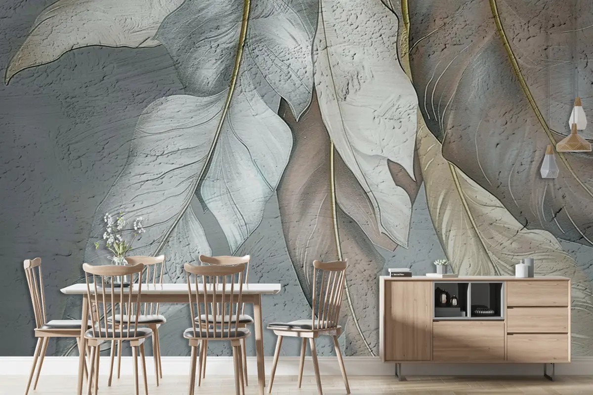 Soyut El Yapımı Nostaljik Yapraklar Yağlıboya Vintage Duvar Kağıdı