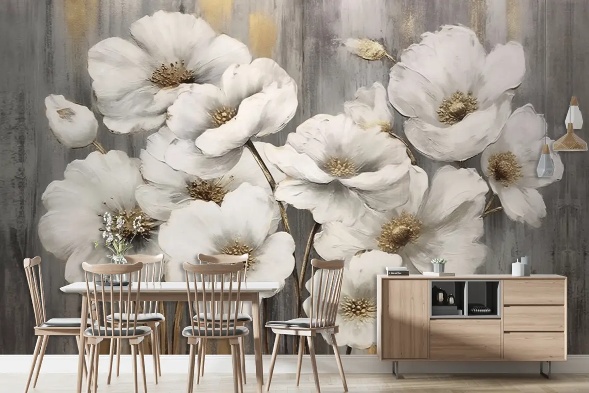 Soyut Elle Boyanmış Nostaljik Çiçekli Yağlıboya Vintage Duvar Kağıdı