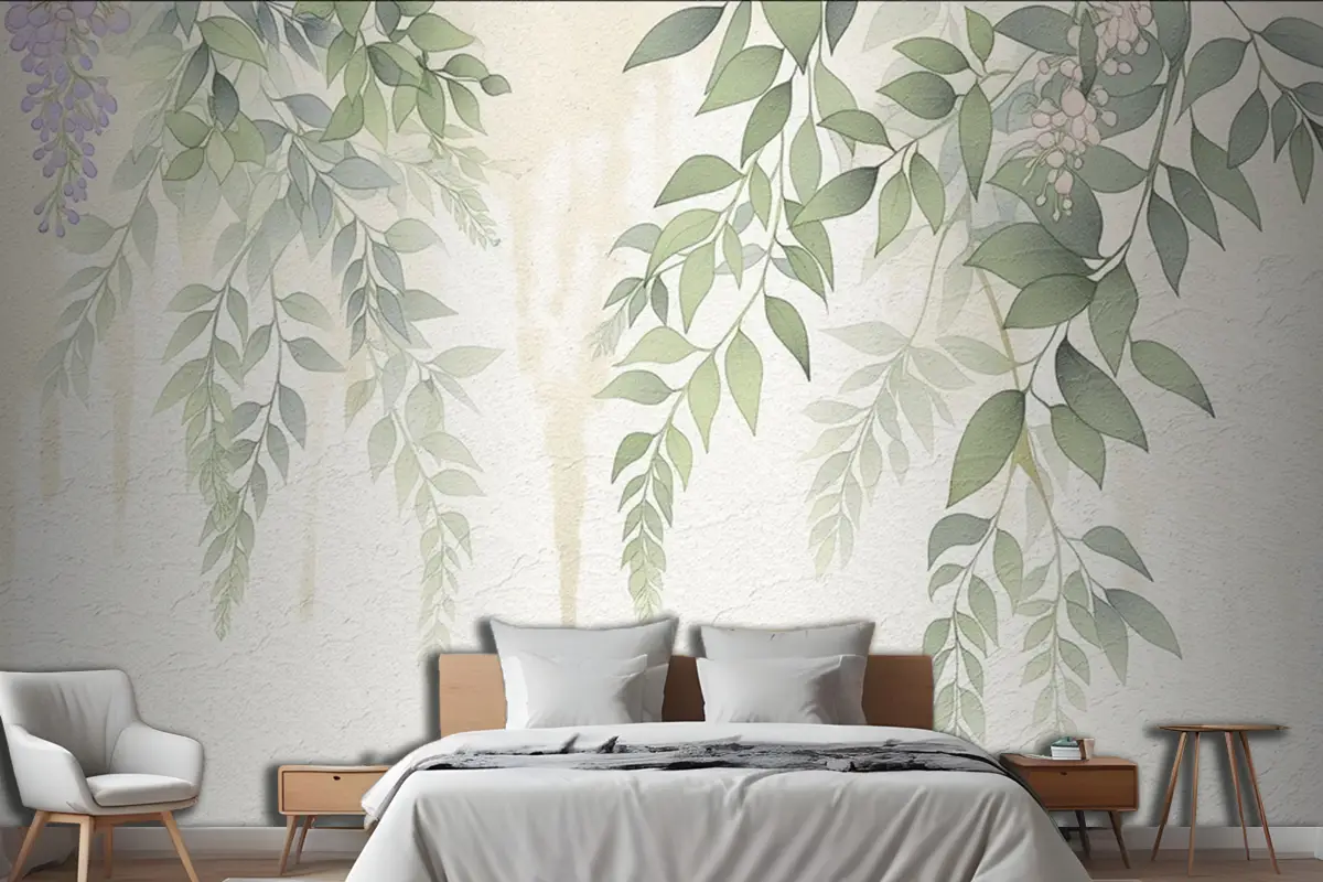 Soyut Elle Çizilmiş Nostaljik Bitki Yaprakları Yağlıboya Sanat Yatak Odası Duvar Kağıdı Duvar