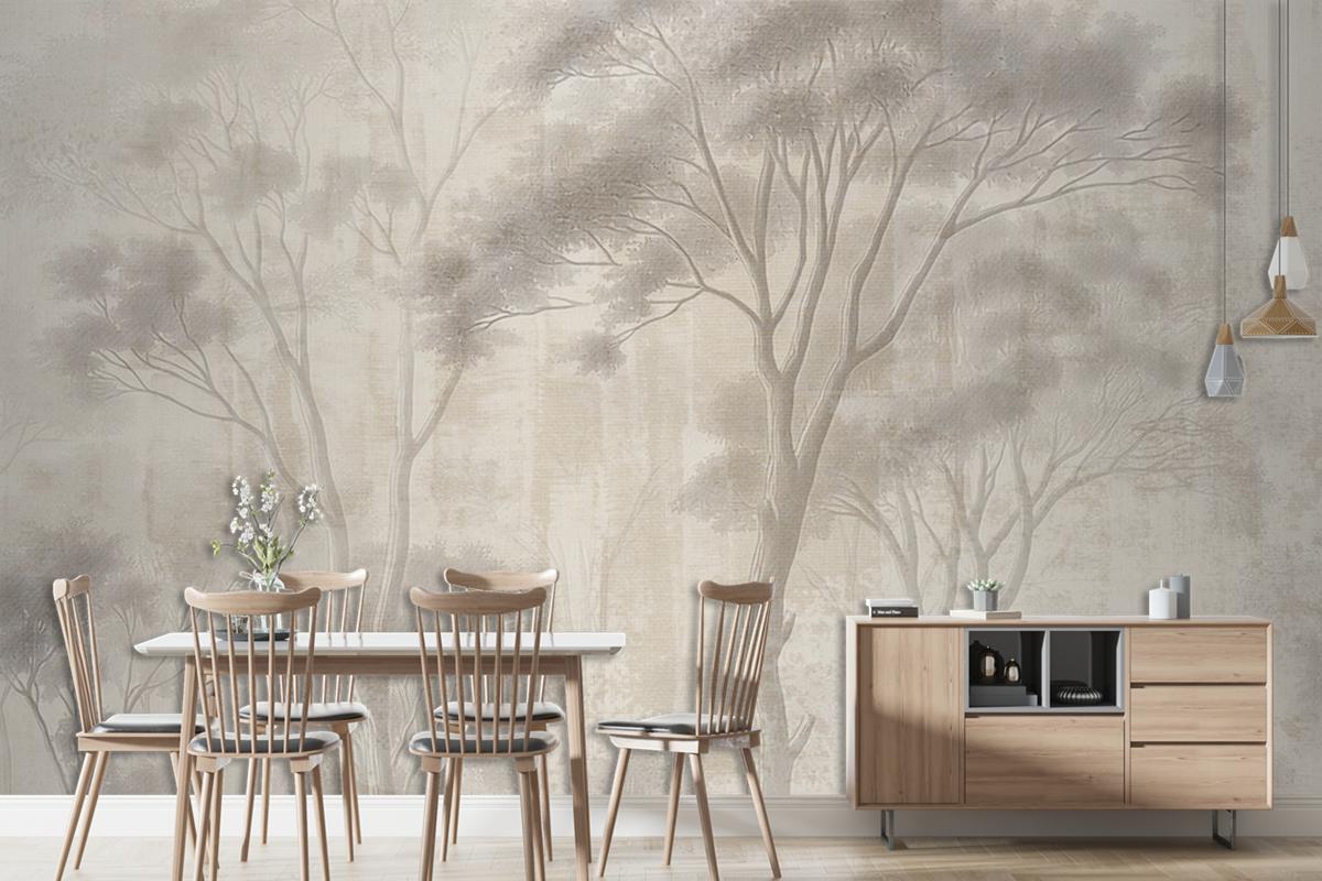 Soyut Elle Çizilmiş Nostaljik Orman Manzarası Sanat Duvar Kağıdı