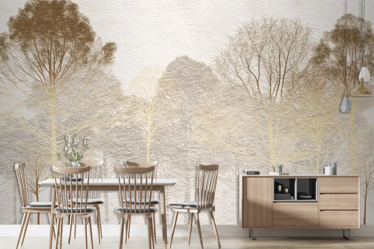 Soyut Elle Çizilmiş Nostaljik Orman Manzarası Vintage Duvar Kağıdı