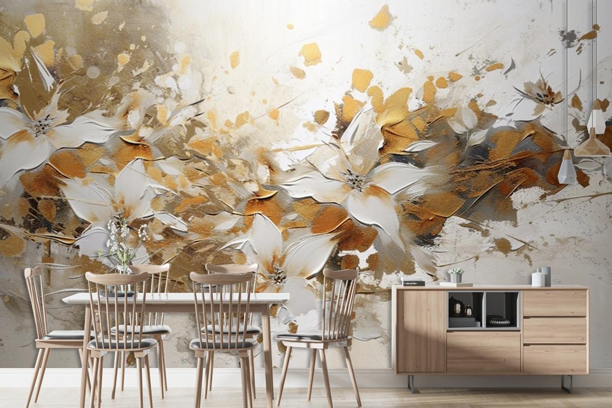 Soyut Sanatsal Arka Plan Çizgiler Altın Fırça Darbeleri 3D Duvar Kağıdı