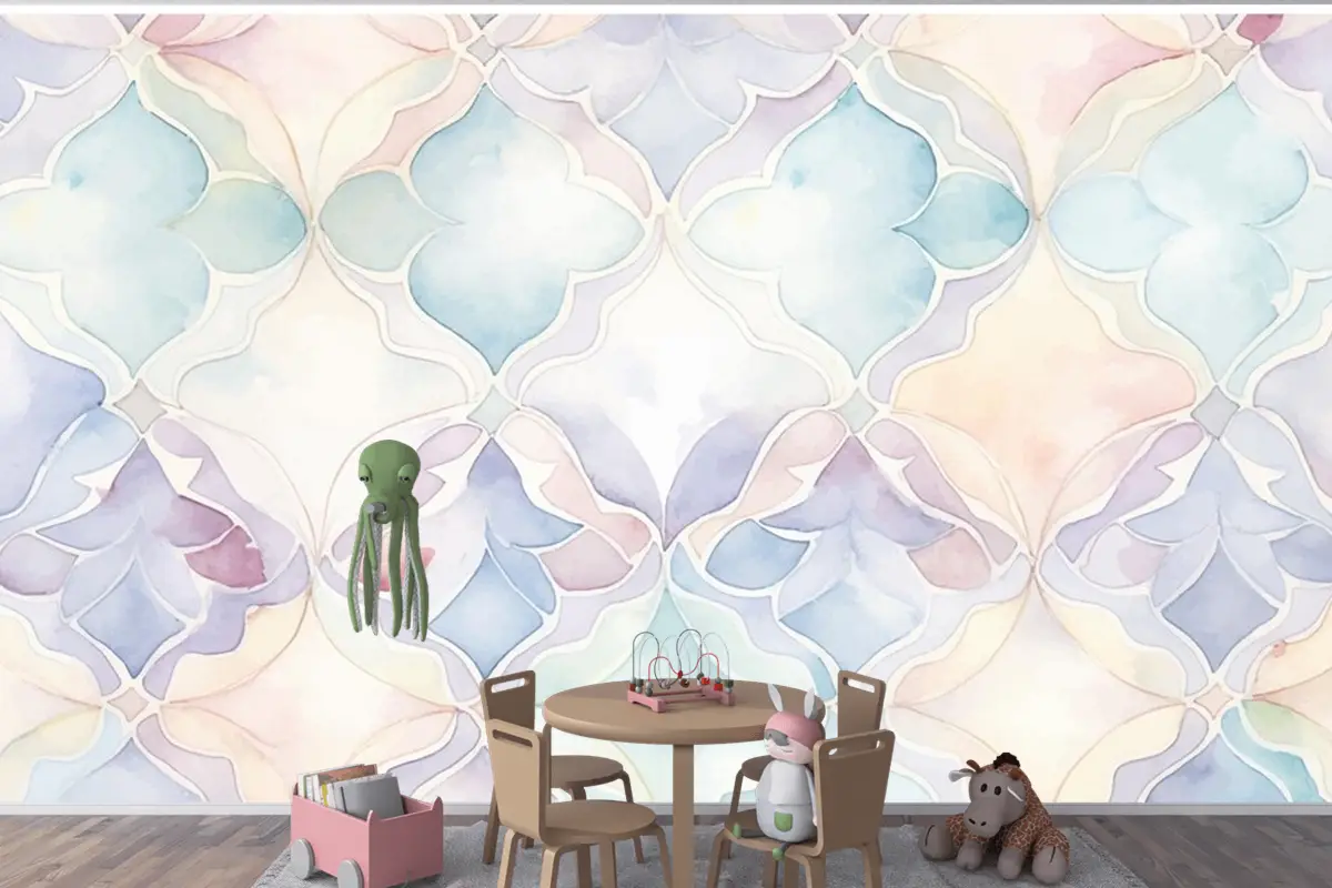 Soyut Suluboya Desenli Çocuk Odası Duvar Kağıdı