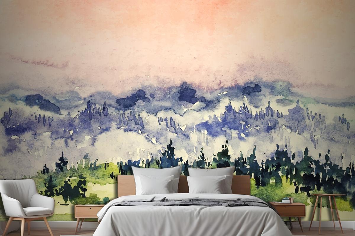 Soyut Suluboya Manzara Arka Plan Yatak Odası Duvar Kağıdı
