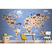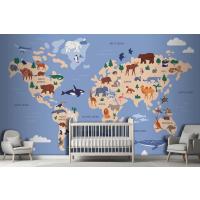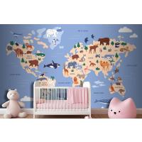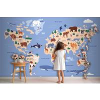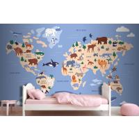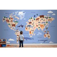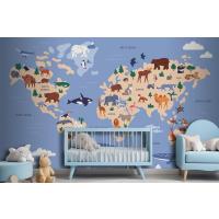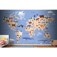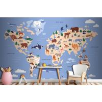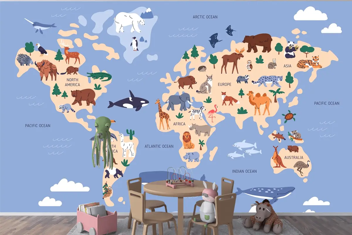 Suda Ve Yeryüzünde Hayvanların Bulunduğu Dünya Haritası Coğrafya Çocuk Odası Duvar Kağıdı