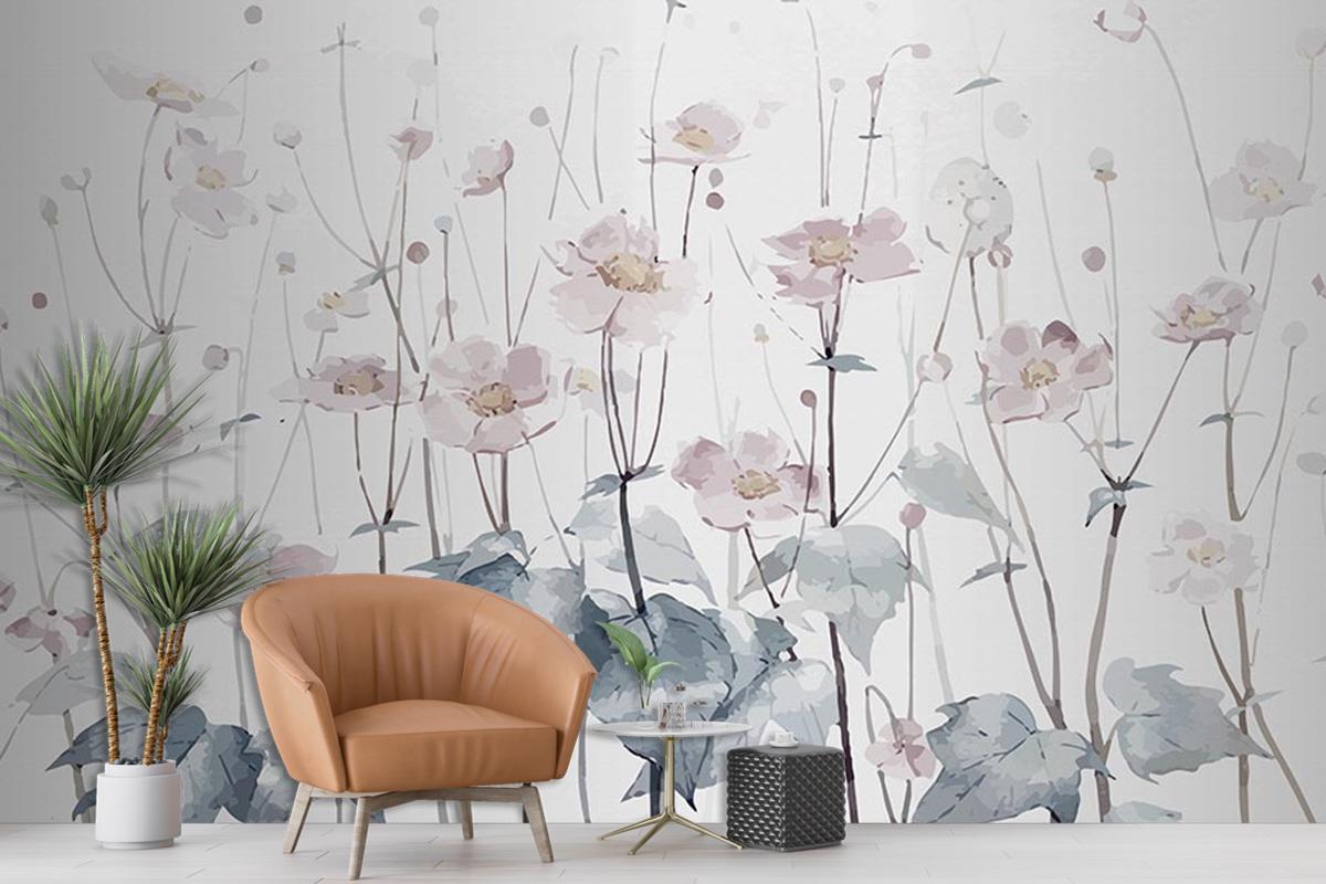 Sulu Boya Soft Renk Çiçekler Duvar Kağıdı