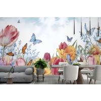 Suluboya Bahçe Çiçek Duvar Kağıdı